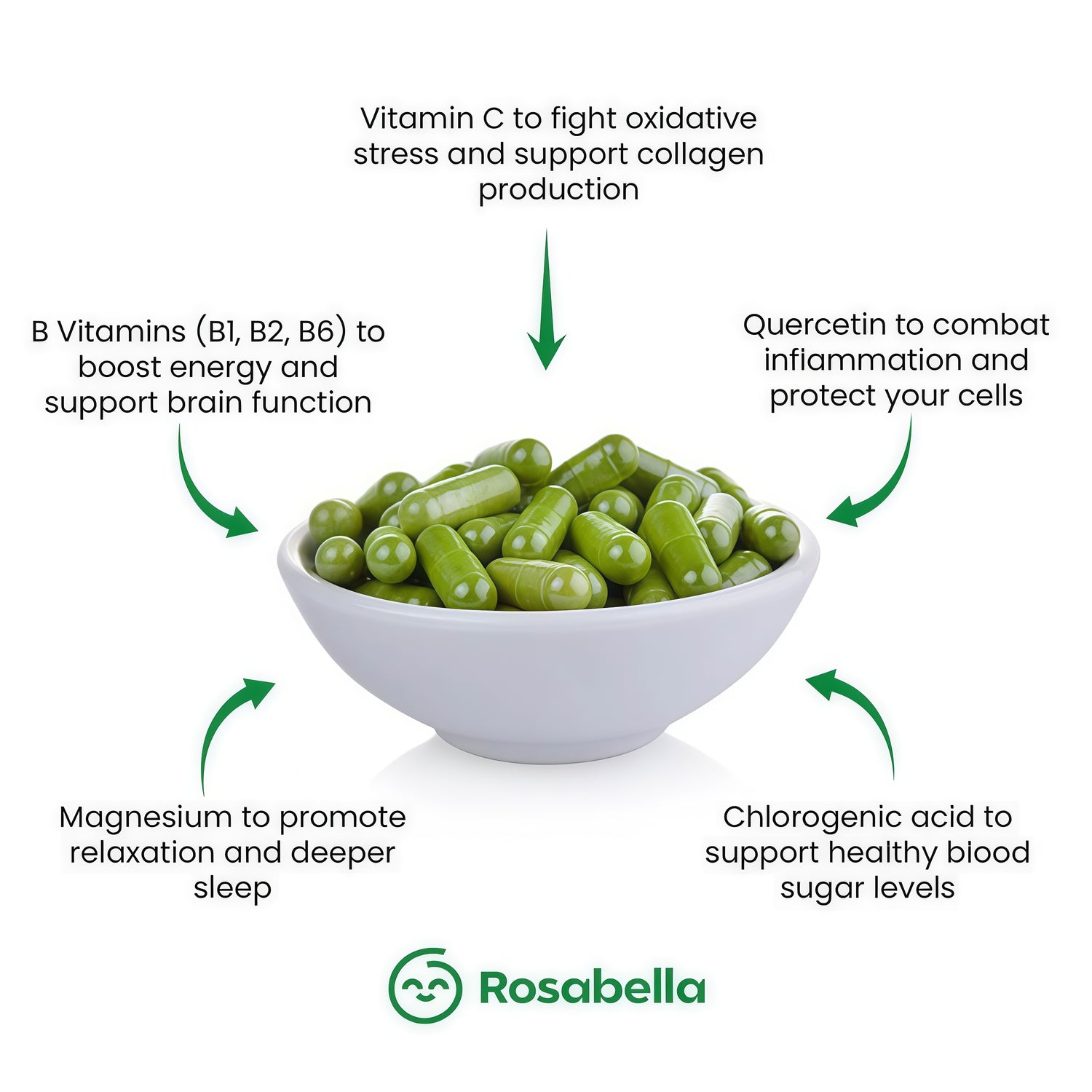 Moringa is renowned for its high nutrient content and wide range of health benefits. Our Rosabella Moringa is formulated to boost energy levels, enhance cognitive function, support immune health, and promote overall well-being by providing your body with essential nutrients.