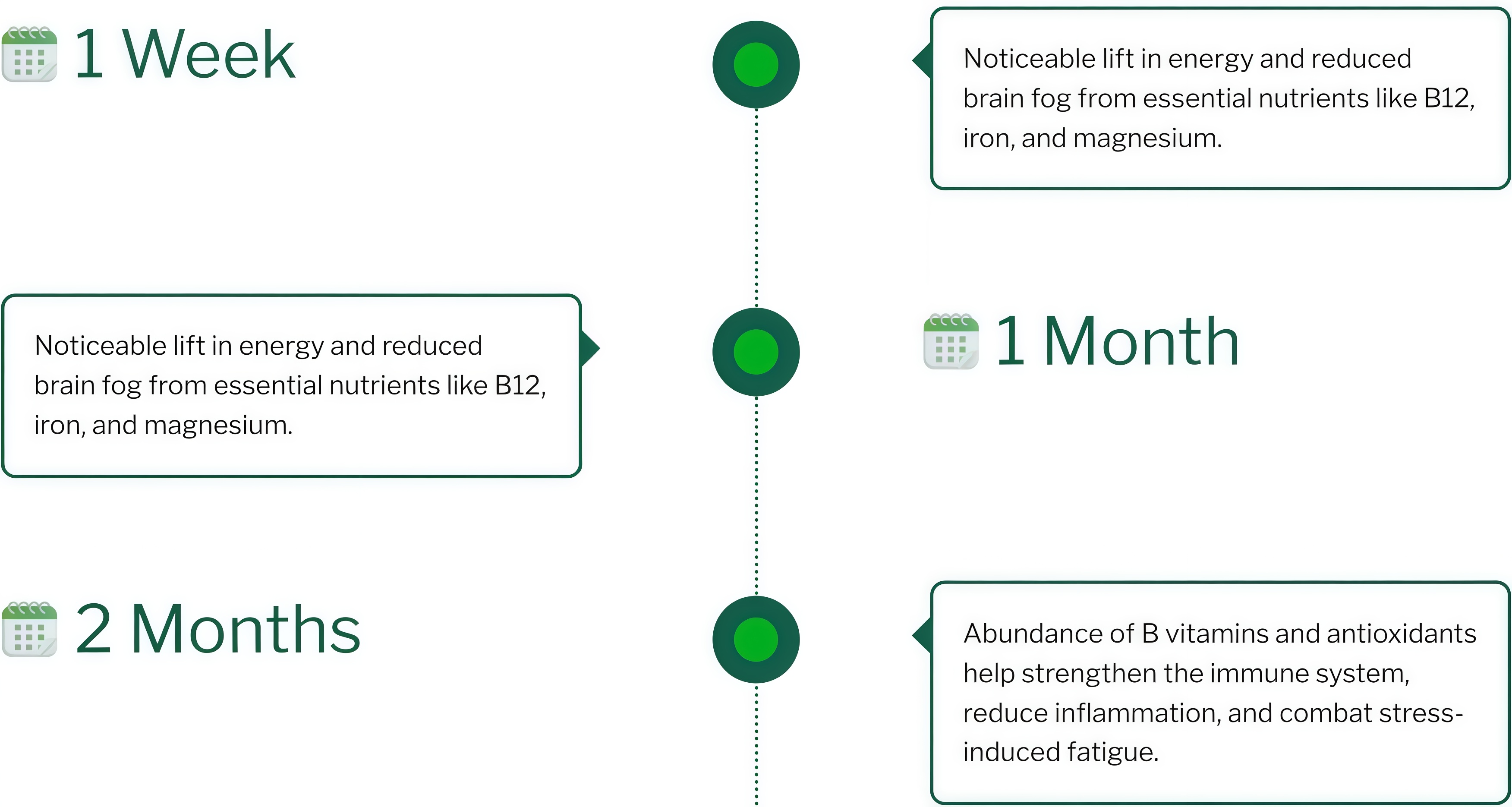 Our customers report feeling improvements within a few days to a week! However, consistent use of Rosabella Moringa will provide the best results, helping to nourish and support your body over time.