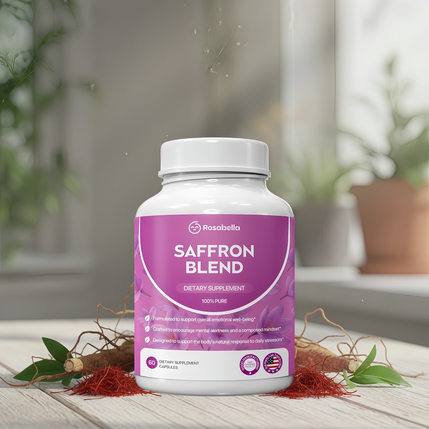 🌿 BOTANICAL SUPPORT FOR MIND & BODY: A daily blend with saffron, rhodiola, and L-theanine for overall wellness support .